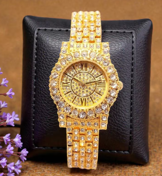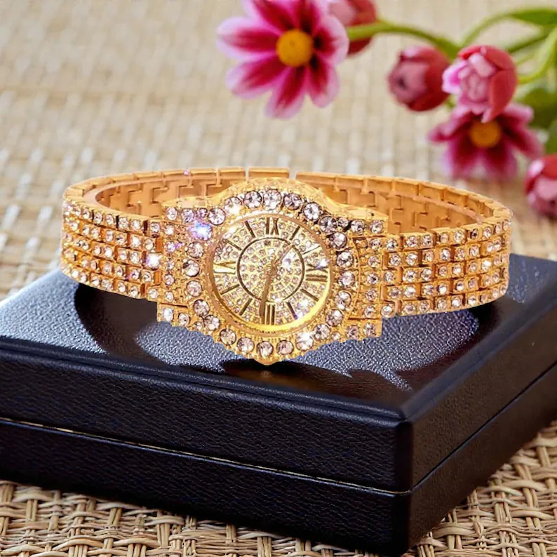 Luxury Gold Crystal Watch for Women | Sparkly Rhinestone Bracelet Watch Gift | Christmas New Year Jewelry Present | Elegant Dress Accessory